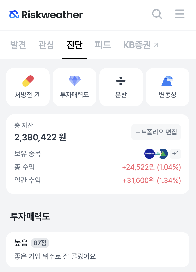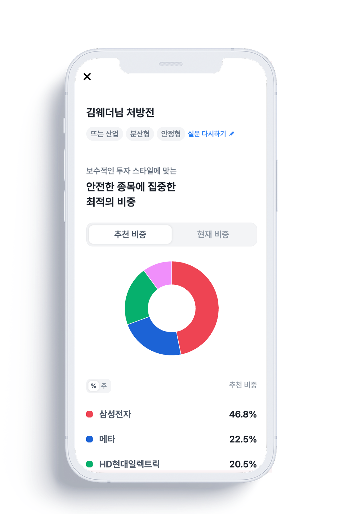 성향에 최적화된 비중과 투자매력도 점수를 통해 효과적으로 관리